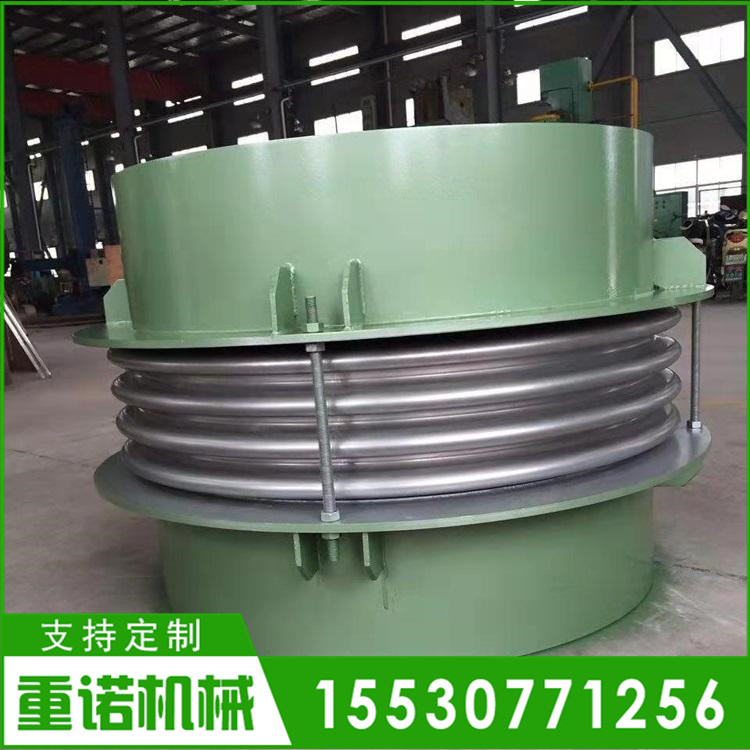 一、轴向型波纹膨胀节 1.普通轴向型是*基本的轴向膨胀节结构。支撑螺母和预拉杆的作用是支撑膨胀节达到*大额定拉伸长度和到现在安装时调整安装长度。如果补偿量较大,可用两节,甚至三节波纹管。使用多节时,要增加抗失稳的导向限位杆。 2.抗弯型波纹膨胀节增加了外抗弯套筒,使整体具有抗弯能力。 3.外压型波纹膨胀节的结构使波纹管外部受压,内部通大气,它的特点是:(1)波纹管受外压不发生柱失稳,可以用多波,实现大补偿量;(2)波纹内不含杂物污物及水,停汽时冷凝水不存波纹内可以排污阀排掉,不怕冷冻;(3)结构稍改进也具有抗弯能力。