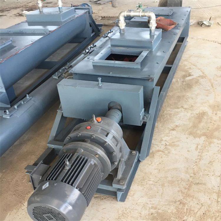 重诺机械公司单轴粉尘搅拌加湿机由均匀供料、叶片输料、混合击打加湿,振动系统等四部分组成,并配以专用电控和供水系统。该设备整体固定在底座上,筒体由四组弹性元件支撑,通过激振装置,施以震动,使整机在运转过程中,筒体作高频振动,使筒壁与搅拌轴之间始终保持一定的间隙,使整机运转阻力大幅度减小,彻底杜*了闷机,堵转现象,减小停机清理时间,提高了工作效率。供水由阀门组进行控制。为稳定本系统供水及清洁水质,管路中设置了过滤器,并由主控柜对加湿机各部分进行联锁控制,以达到控制供水恒湿运行的目的。搅拌加湿机具有处理量大、结构紧凑、技术、稳定可靠、维修简单等特点。单轴粉尘加湿搅拌机经常适用于各类灰库干灰进行喷水加湿搅拌及输送粉状,以达到环保外运的要求。广泛应用于化工、矿山、电厂、钢厂等含固体颗粒物料的加湿、搅拌和输送。单轴螺旋输送机1.出力大(每小时可搅拌加湿200t),加湿均匀,工作可靠。2.特制的雾化喷嘴及水量可调的给水系统,可保证物料加湿均匀。3.增加振动系统,使之克服了其处理粘性粉尘易形成筒壁粘结的问题,提高了加湿机的适应性,扩大了加湿机的应用范围。且壳体与底座采用弹性联接,使振打对整机无影响。4.搅拌棒采用铁基耐磨合金或复合陶瓷制造,使用寿命长 5.壳体内衬采用铁基耐磨合金制造,使用寿命高,避免间隙过大引起的物料自流。6.本机布置灵活,有链传动和直联两种形式,传动机构采用摆线式减速机。
