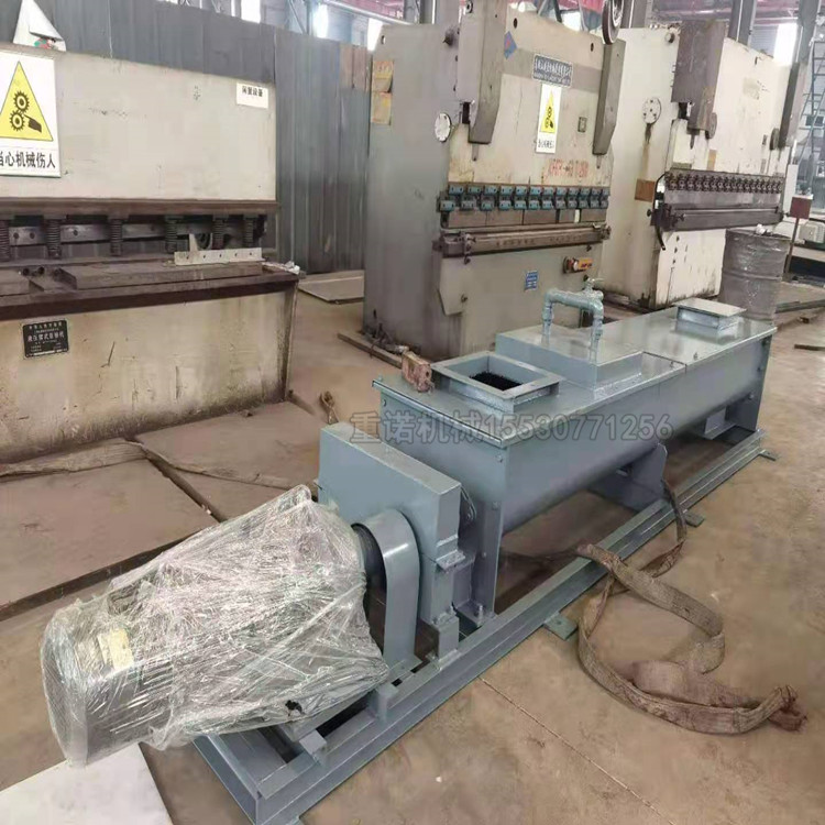 单轴粉尘搅拌加湿机由均匀供料、叶片输料、混合击打加湿,振动系统等四部分组成,并配以专用电控和供水系统。该设备整体固定在底座上,筒体由四组弹性元件支撑,通过激振装置,施以震动,使整机在运转过程中,筒体作高频振动,使筒壁与搅拌轴之间始终保持一定的间隙,使整机运转阻力大幅度减小,彻底杜*了闷机,堵转现象,减小停机清理时间,提高了工作效率。供水由阀门组进行控制。为稳定本系统供水及清洁水质,管路中设置了过滤器,并由主控柜对加湿机各部分进行联锁控制,以达到控制供水恒湿运行的目的。搅拌加湿机具有处理量大、结构紧凑、技术、稳定可靠、维修简单等特点。单轴粉尘加湿搅拌机经常适用于各类灰库干灰进行喷水加湿搅拌及输送粉状,以达到环保外运的要求。广泛应用于化工、矿山、电厂、钢厂等含固体颗粒物料的加湿、搅拌和输送。单轴螺旋输送机1.出力大(每小时可搅拌加湿200t),加湿均匀,工作可靠。2.特制的雾化喷嘴及水量可调的给水系统,可保证物料加湿均匀。3.增加振动系统,使之克服了其处理粘性粉尘易形成筒壁粘结的问题,提高了加湿机的适应性,扩大了加湿机的应用范围。且壳体与底座采用弹性联接,使振打对整机无影响。4.搅拌棒采用铁基耐磨合金或复合陶瓷制造,使用寿命长 5.壳体内衬采用铁基耐磨合金制造,使用寿命高,避免间隙过大引起的物料自流。6.本机布置灵活,有链传动和直联两种形式,传动机构采用摆线式减速机。1553*077*