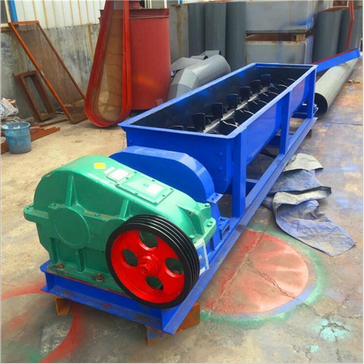单轴粉尘搅拌加湿机由均匀供料、叶片输料、混合击打加湿,振动系统等四部分组成,并配以专用电控和供水系统。该设备整体固定在底座上,筒体由四组弹性元件支撑,通过激振装置,施以震动,使整机在运转过程中,筒体作高频振动,使筒壁与搅拌轴之间始终保持一定的间隙,使整机运转阻力大幅度减小,彻底杜*了闷机,堵转现象,减小停机清理时间,提高了工作效率。供水由阀门组进行控制。为稳定本系统供水及清洁水质,管路中设置了过滤器,并由主控柜对加湿机各部分进行联锁控制,以达到控制供水恒湿运行的目的。搅拌加湿机具有处理量大、结构紧凑、技术、稳定可靠、维修简单等特点。单轴粉尘加湿搅拌机经常适用于各类灰库干灰进行喷水加湿搅拌及输送粉状,以达到环保外运的要求。广泛应用于化工、矿山、电厂、钢厂等含固体颗粒物料的加湿、搅拌和输送。单轴螺旋输送机1.出力大(每小时可搅拌加湿200t),加湿均匀,工作可靠。2.特制的雾化喷嘴及水量可调的给水系统,可保证物料加湿均匀。3.增加振动系统,使之克服了其处理粘性粉尘易形成筒壁粘结的问题,提高了加湿机的适应性,扩大了加湿机的应用范围。且壳体与底座采用弹性联接,使振打对整机无影响。4.搅拌棒采用铁基耐磨合金或复合陶瓷制造,使用寿命长 5.壳体内衬采用铁基耐磨合金制造,使用寿命高,避免间隙过大引起的物料自流。6.本机布置灵活,有链传动和直联两种形式,传动机构采用摆线式减速机。