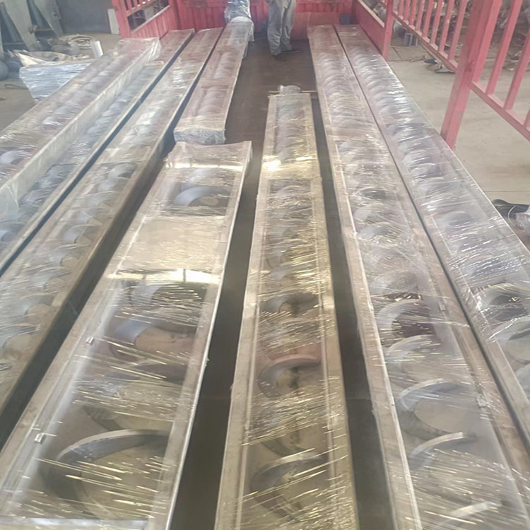 无轴螺旋输送机其主要的部件就是叶片装置了,无轴螺旋叶片采用高强度材料制造,具有足够的强度和刚度,无轴螺旋叶片采用工装模具热拉成形,成形后的叶片间距均匀、统一。外圆直径与螺旋槽相配套,并具有合适的旋转速度,既能达到输送物料的目的又不会