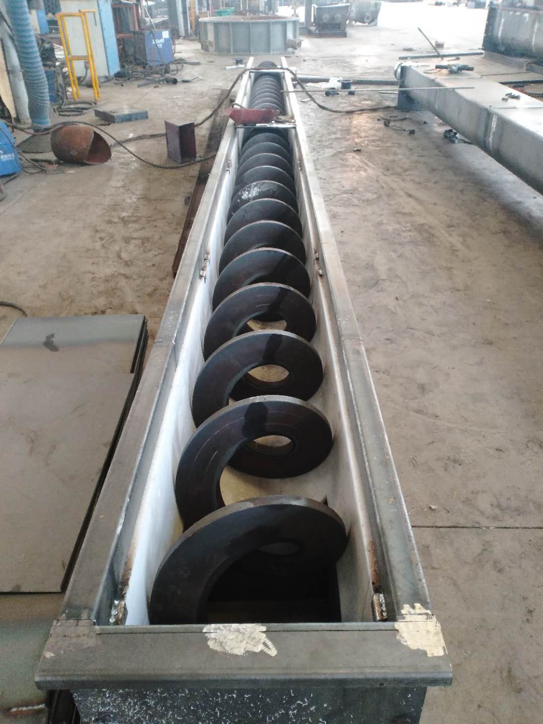 螺旋输送机的发展,分为有轴螺旋输送机和无轴螺旋输送机两种型式的发展过程。有轴螺旋输送机由螺杆,U型料槽,盖板,进、出料口和驱动装置组成,一般还有水平式,倾斜式和垂直式三种;而无轴旋输送机则采用螺杆改为无轴螺旋,并在U型槽内装置有可换衬体,结构简单,物料由进料口输入经螺旋推动后由出料口输出,整个传输过程可在一个密封的槽中进行。一般来讲,我们平常所指的螺旋输送机都指有轴型式的螺旋输送机。新疆阿拉尔不锈钢绞龙给料机结构与工作原理