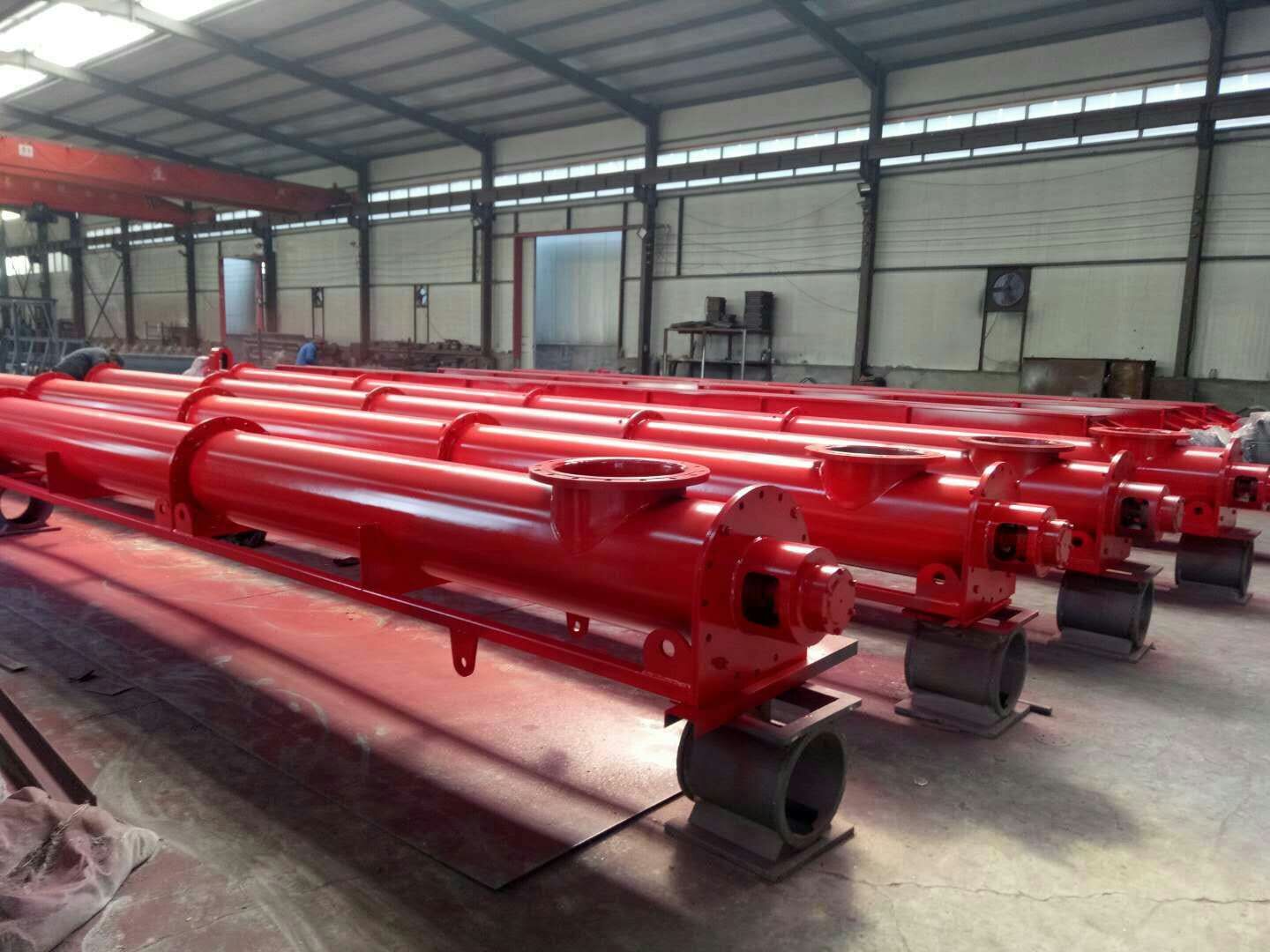 沧州重诺机械公司研发生产的管式螺旋输送机是利用旋转的螺旋将被输送的物料沿固定的机壳内推移完成输送工作的。管式螺旋输送机头部及尾部轴承移至壳体外,吊轴承采用滑动轴承设有 尘密封装置,轴瓦 般采用粉末冶金,输送水泥采用毛毡轴瓦,吊轴和螺旋轴采用滑块连接。管式螺旋输送机是利用螺旋旋转而推移物料的连续输送设备,管式输送机适用输送面粉、谷类、水泥、化肥、灰渣、沙子、石子、煤粉、小块煤等物料。由于机体内有效流通面积小,管式输送机不宜输磅易变质的、粘性太大、易结块的物料。管式螺旋输送机可布置成水平或倾斜输送形式 当水平输送时,物料颗粒受沧州重诺到链片在运动方向的推力。当料层间的内摩擦力大于物料与管壁的外摩擦力时,物料就随链片向前运动,形成稳定的料流;当垂直输送时,管内物料颗粒受链片向上推力,因为下部给料阻止上部物料下滑,产生了横向侧压力,所以增强了物料的内摩擦力,当物料间的内摩擦力大于物料与管内壁外摩擦力及物料自重时,物料就随链片向上输送,形成连续送料,沧州重诺公司研发生产输送设备多年来受到广大客户好评,生产的圆管式输送机适用于各种复杂条件下,输送块状物料。管式螺旋输送机和喂料机在粉状和颗粒状物料输送中有着广泛的应用。根据输送物料的不同,可以选择不同型号的输送机和喂料机,例如:混凝土产品(水泥,飞 尘,填装器尘埃,沙尘),沥青产品(冷热加工尘埃),建筑预拌物料(干石灰,沙子,水泥,填加剂),玻璃工艺(石灰石,纯碱,沙子等),铸造厂(沙子,班 脱土)等。